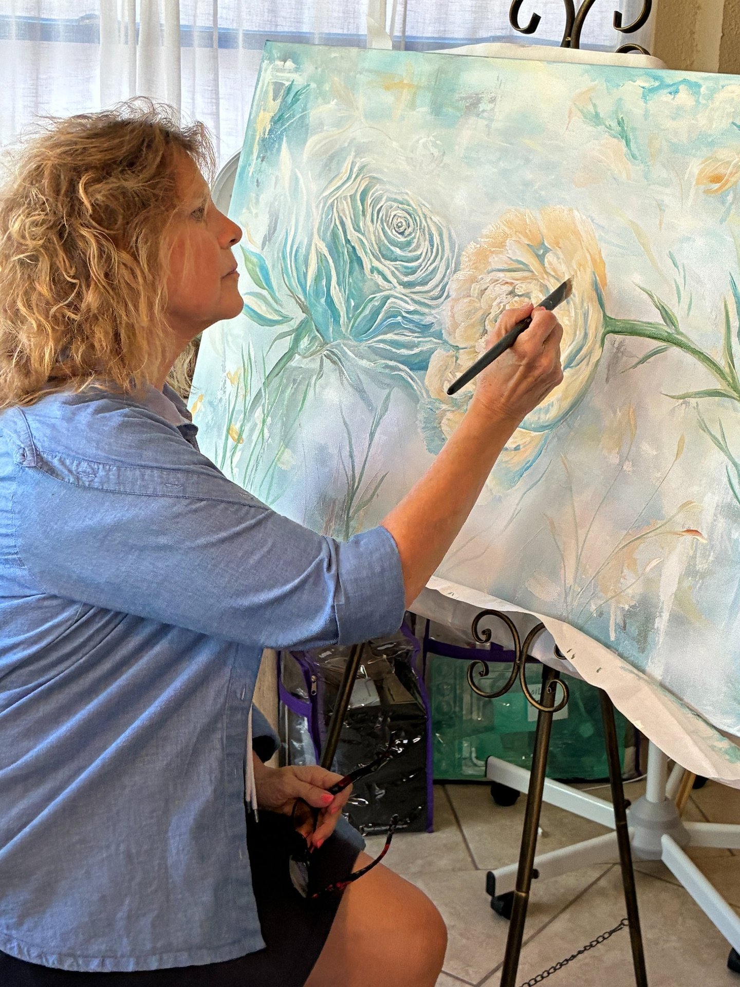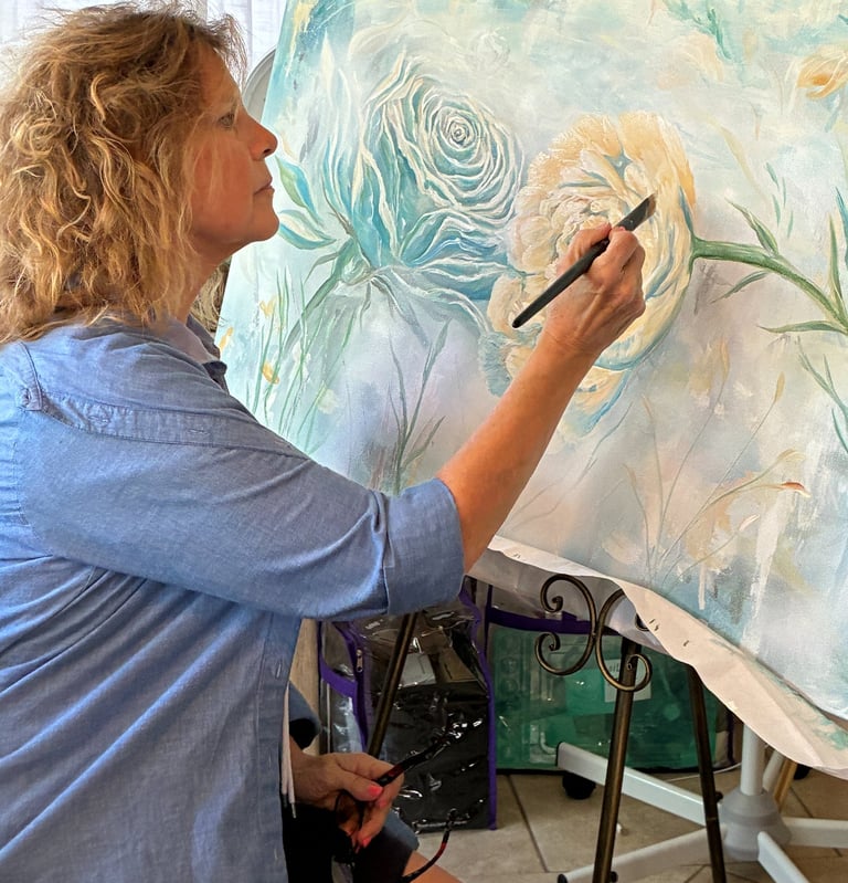 I create atmospheric floral paintings inspired by life beside the water, gardens in bloom, and the quiet beauty that unfolds when we slow down enough to notice it. Each piece is created to bring peace, elegance, and meaning into the home.